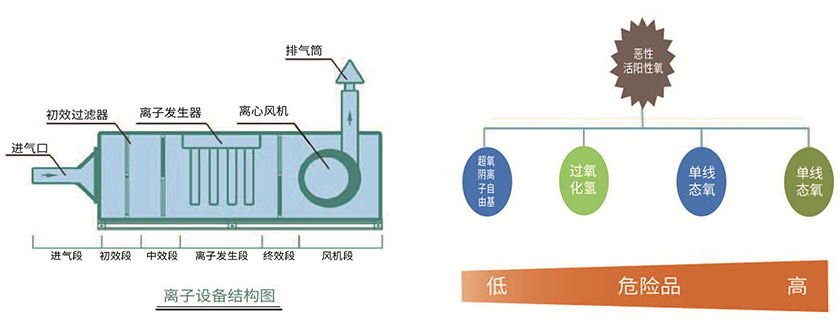 活性氧離子除臭工作原理是離子發(fā)生器發(fā)射出高能正、負離子,它可以與空氣當中的有機揮發(fā)性氣體分子(VOC)接觸,打開VOC分子化學(xué)鍵,分解成二氧化碳和水;對硫化氫、氨同樣具有分解作用;離子發(fā)生器發(fā)射離子與空氣中塵埃粒子及固體顆粒碰撞,使顆粒荷電產(chǎn)生聚合作用,形成較大顆??孔陨碇亓Τ两迪聛?,達到凈化目的;發(fā)射離子還可以與室內(nèi)靜電、異味等相互發(fā)生作用,同時有效地破壞空氣中細菌生存的環(huán)境,降低室內(nèi)細菌濃度,并將其完全消除。 |